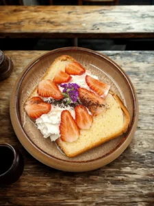 Un baba moelleux imbibé à la prunelle de Troyes, notre liqueur locale au caractère affirmé. Servi avec sa crème légère, et ses fraises, c’est un clin d’œil sucré à notre terroir.