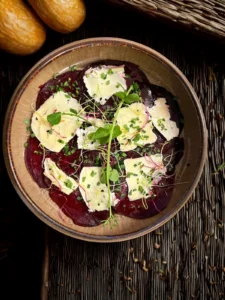 Carpaccio de betteraves et copeaux de Chaource Mussy raffiné