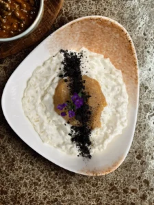 Riz au lait crémeux accompagné d’un cœur de confiture de lait – Malice et de fromage blanc.